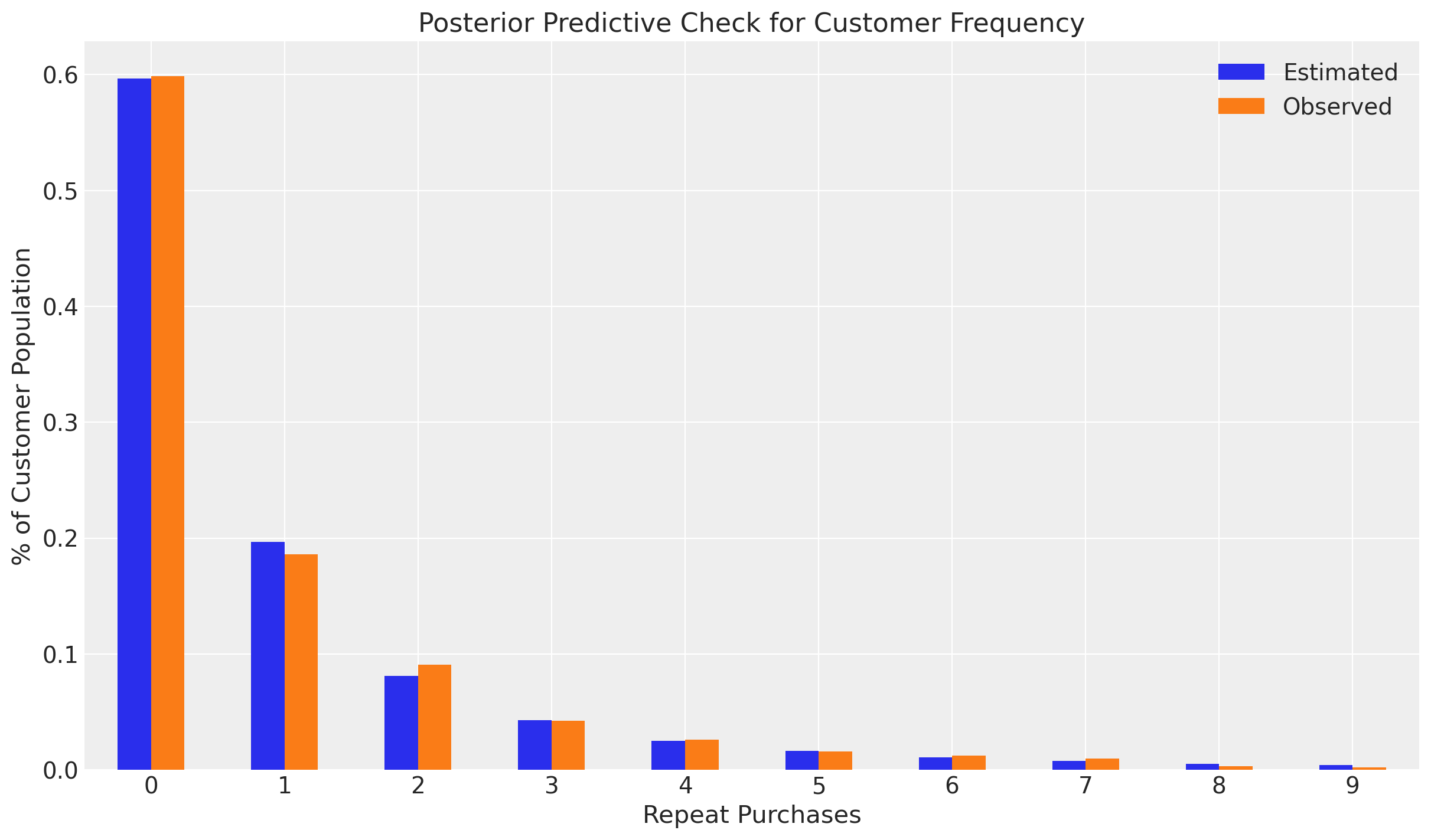 In this notebook we show how to fit a BG/NBD model in PyMC-Marketing. We compare the results with the lifetimes package (no longer maintained). The model is presented in the paper: Fader, P. S., Hardie, B. G., & Lee, K. L. (2005). “Counting your customers” the easy way: An alternative to the Pareto/NBD model. Marketing science, 24(2), 275-284.